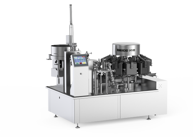 3. 設(shè)備操作方便,采用先進(jìn)的機(jī)械傳動(dòng)系統(tǒng),實(shí)現(xiàn)自動(dòng)取袋、自動(dòng)稱(chēng)量、自動(dòng)裝料、自動(dòng)抽真空、自動(dòng)封口、自動(dòng)卸料。