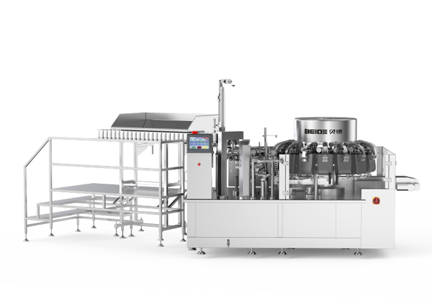 1. 基于BD-8ZK10-130款基礎(chǔ)上進(jìn)行改良,現(xiàn)一臺(tái)機(jī)器產(chǎn)能可達(dá)到原來(lái)兩臺(tái)機(jī)器產(chǎn)能的效率,包裝速度120包每分鐘,有效提升空間利用率和產(chǎn)能。
