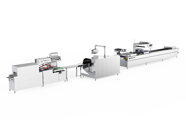 • 全自動包裝生產(chǎn)線基于貝德原先產(chǎn)品的基礎(chǔ)上增加裝盒熱收縮功能,實現(xiàn)生產(chǎn)一體化,將全自動拉伸膜真空包裝設(shè)備
