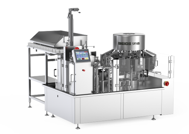 3. 設(shè)備操作方便,采用先進(jìn)的機(jī)械傳動(dòng)系統(tǒng),實(shí)現(xiàn)自動(dòng)取袋、自動(dòng)稱(chēng)量、自動(dòng)裝料、自動(dòng)抽真空、自動(dòng)封口、自動(dòng)卸料。